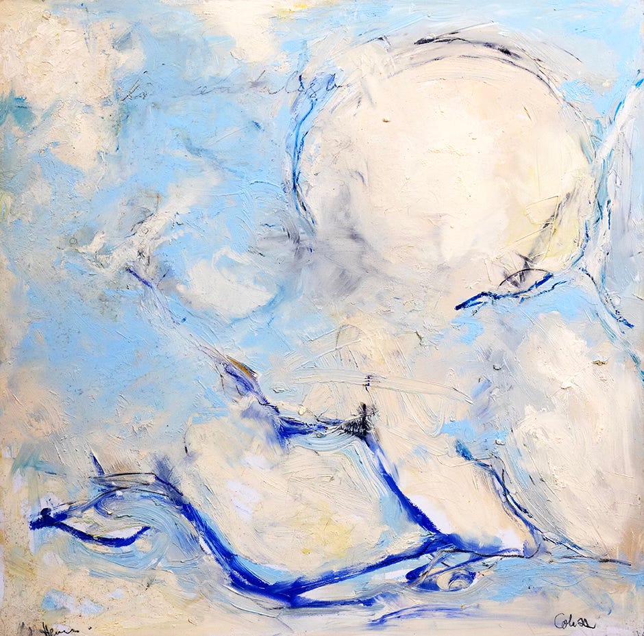 Soul Paintings are abstract art. They are non-representational, requiring you to bring more of yourself to complete the experience. Bottom-up processing, all your senses and imagination must be used to begin to interpret the art, versus top-down processing, which requires previous knowledge. By utilizing all your senses and intuition to “see” the colors…